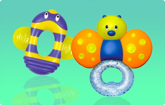 The CoolBite™ teether by Nûby™ provides textured surfaces for your baby to bite and teethe on safely during their teething periods. The colorful characters are easy for baby to hold and sized for maximum effectiveness as a teether and soother. This Nûby™ teether, filled with pûrICE™, can be placed in the refrigerator. pûrICE™ stays colder longer than water filled teethers!