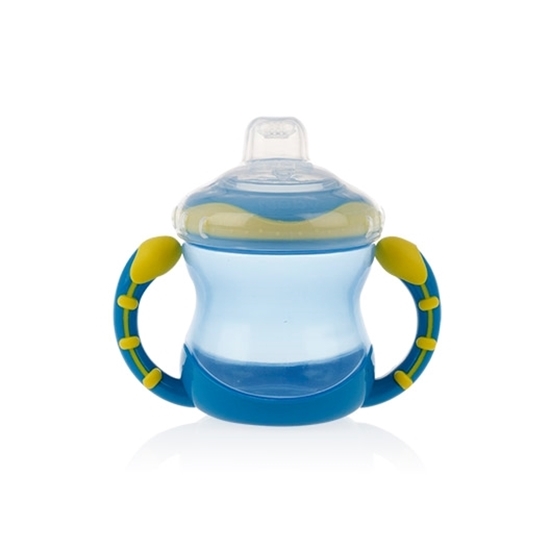 Nuby™ ayuda a que tu pequeño encuentre la transición del biberón al vaso más fácil gracias a la forma contorneada diseñada para adaptarse a las manos pequeñas de esta taza. La boquilla de silicón suave está diseñada para hacer más fácil la alimentación, asegurando el líquido fluya sólo con la succión del niño.